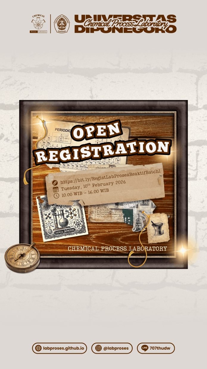 For the latest information about the Chemical Process Laboratory, follow our official accounts: Instagram: @labproses